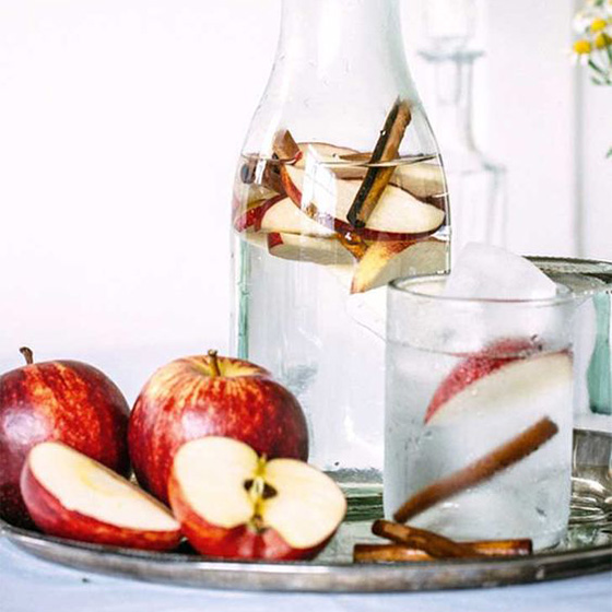 - En un litro de agua, introduce la manzana y las piezas de canela
